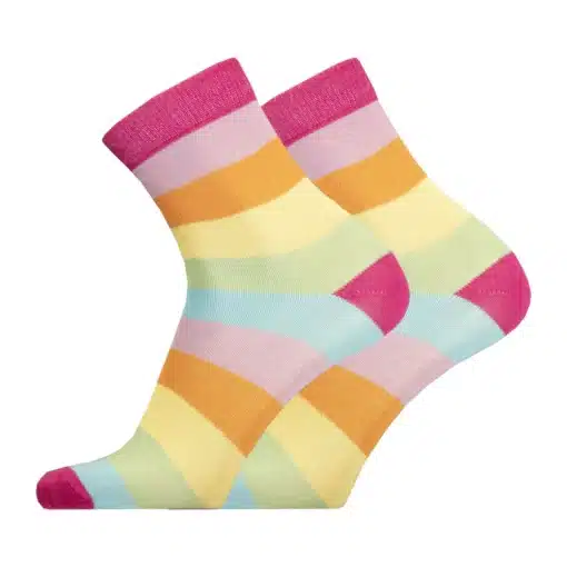 גרביים רכות וגמישות מכותנה אורגנית עם פסים צבעוניים רעננים. גרביים נעימות שמתאימות לשימוש יומיומי בעבודה ובפנאי.