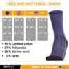 - 45% כותנה אורגנית מבטיח נוחות. 26% צמר מרינו מסוגל גם לנדף זיעה וגם לחמם בסוליות.